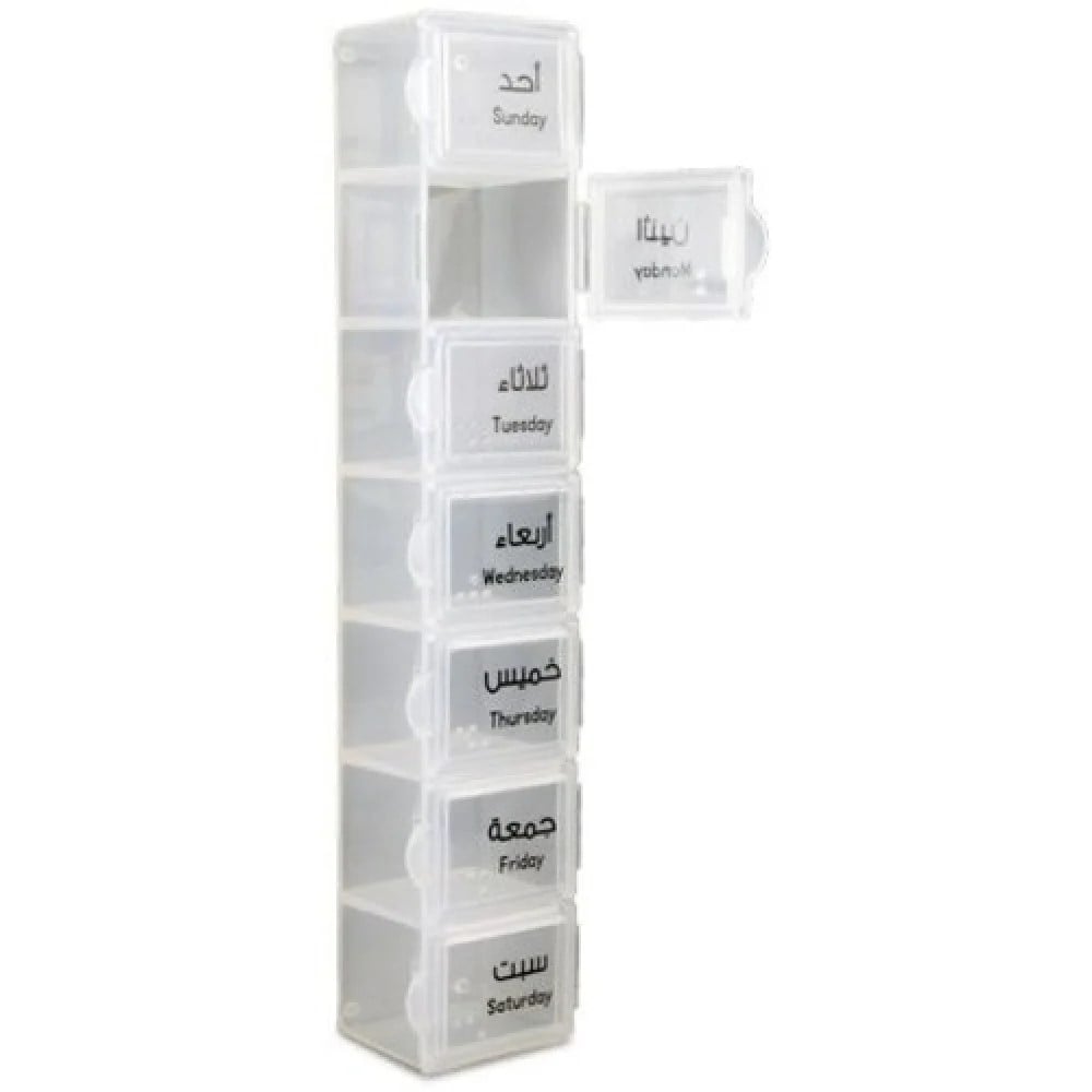 • علبة شفافة مستطيلة لتنظيم الأدوية أسبوعيا.